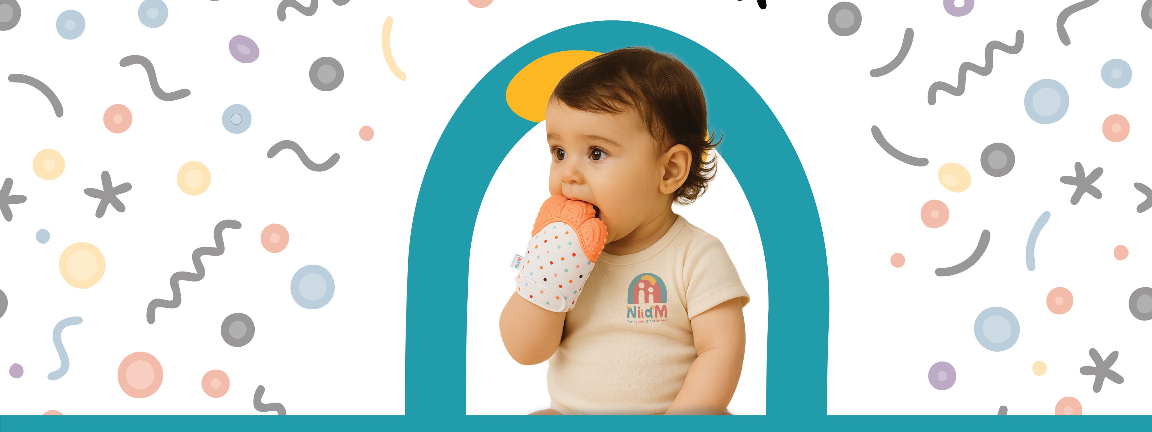 LeโฏNidโฏdโM mitten glove stays on, keeps babyโs hand clean, and gives them the perfect chew.
